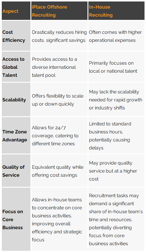 Offshore recruiting is a strategic approach to talent acquisition that leverages the expertise and resources of offshore locations, such as the Philippines and India, to source, screen, and manage candidates for organizations worldwide. It’s a cost-effective solution that opens doors to a vast pool of talent, allowing companies to find the right candidates quickly and efficiently.